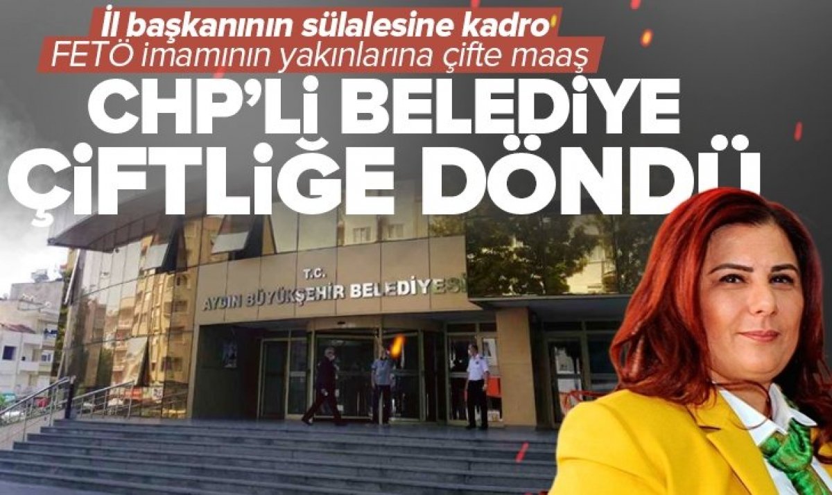 CHP'li Aydın Büyükşehir Belediyesi adeta çiftliğe döndü. Özlem Çerçioğlu yönetimindeki kurumda, FETÖ'nün Belediyeler İmamı olan Erkan Karaarslan'a yakın isimlerin çift maaş aldığı ortaya çıktı. Ayrıca CHP Aydın İl Başkanı Hikmet Saatçi, oğlu, kızı, gelini ve damadını işe yerleştirerek belediyeyi adeta çiftliğe çevirdi..